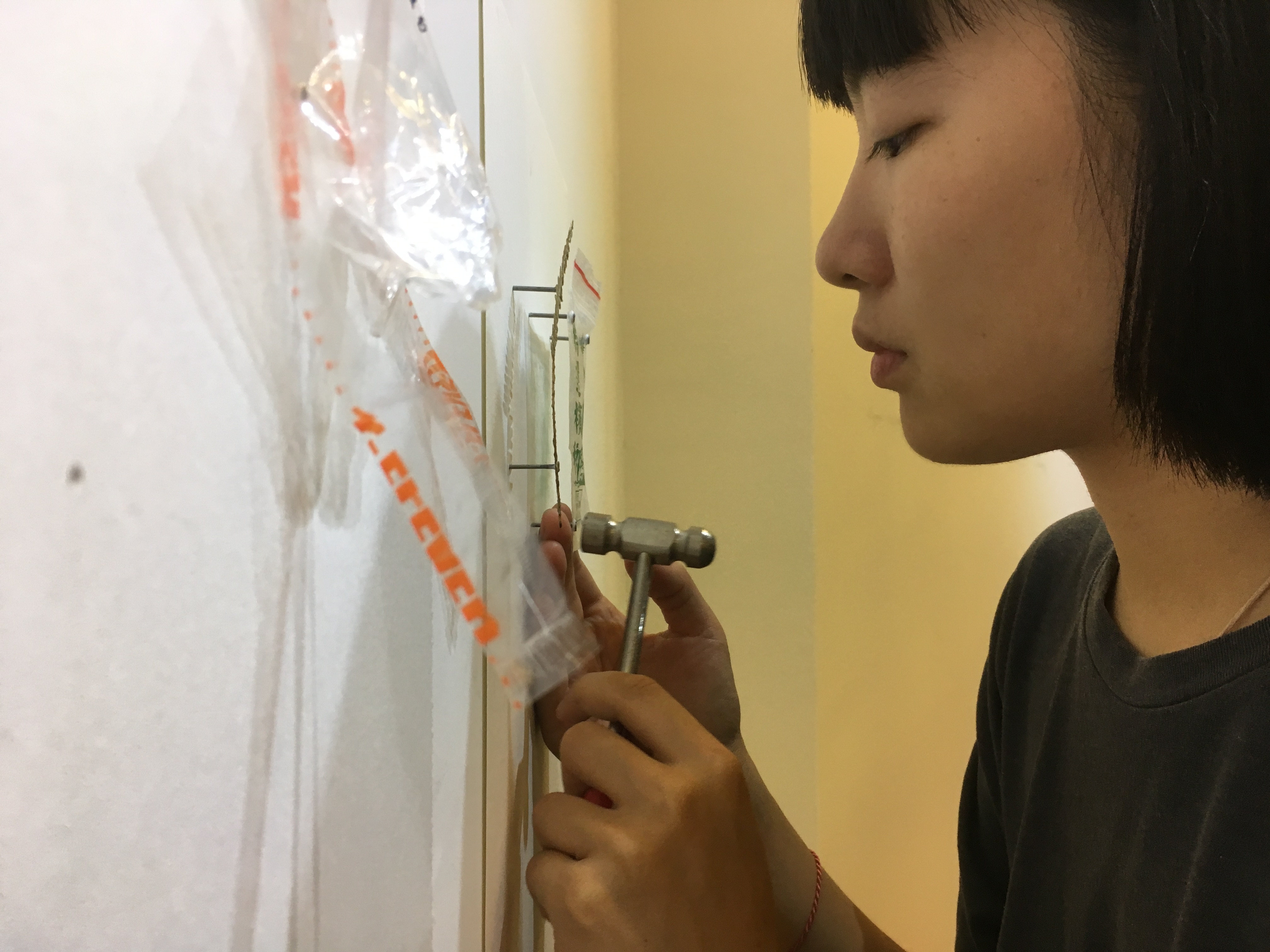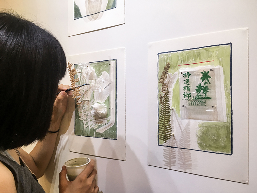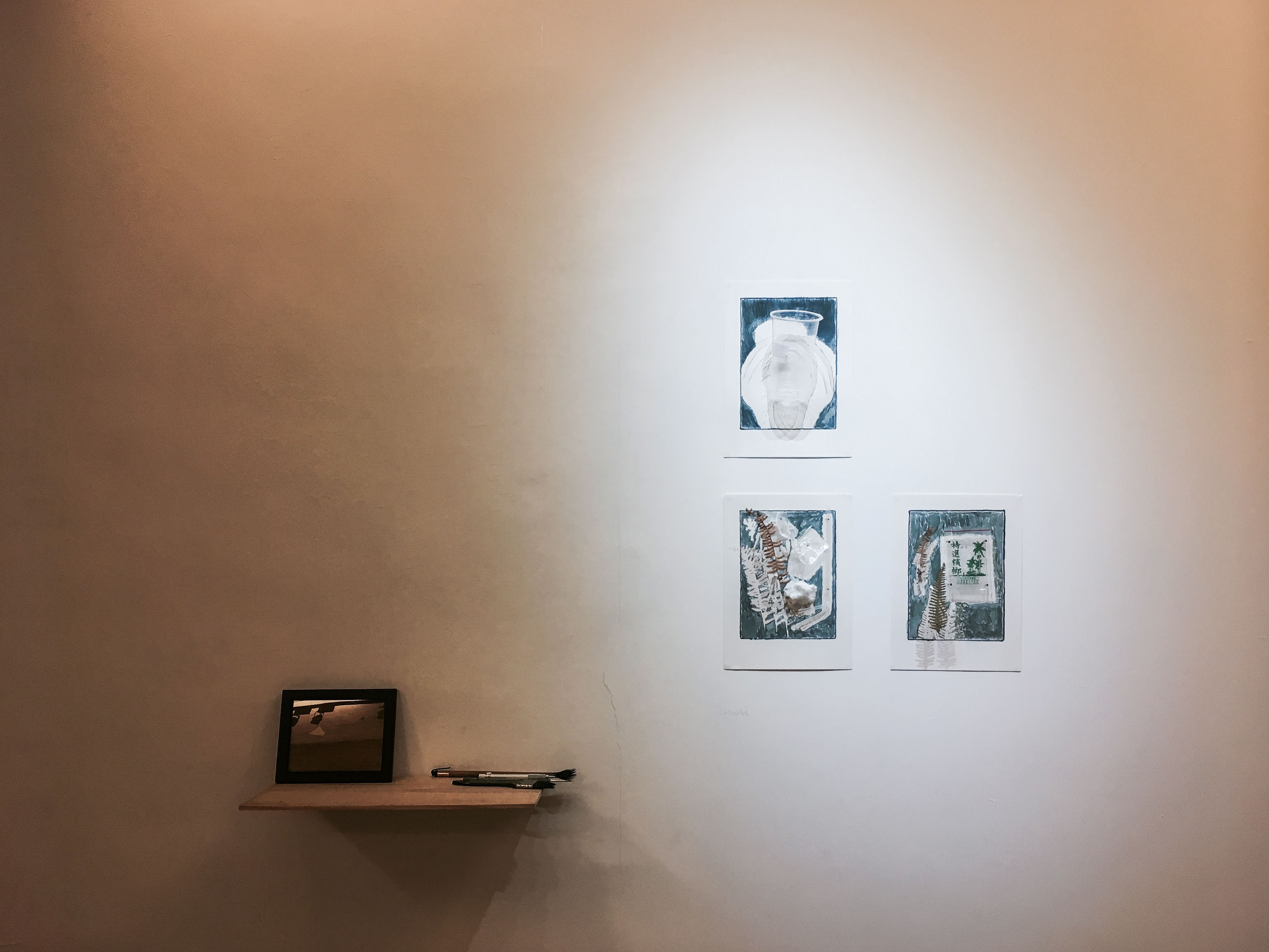將撿拾的步行與移動,思緒的串流和環境意識的感受予以階段式的表現。反轉氰顯影的流程,將化學藥劑作為顏料,於展覽期間逐日繪上紙張,展覽的這段時間成為曬相過程,而圖像成為「踏拾」本身。透過行為整理接下來的計畫,持續思考環境和影像交會的可能。
